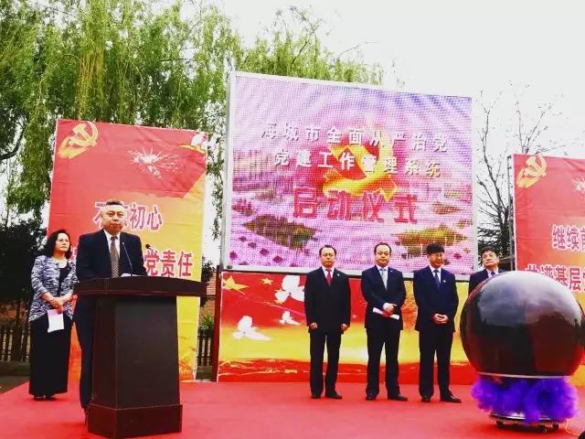 海城市启动“全面从严治党党建工作考核管理平台”建设项目,将绩效管理理念与工作方法和互联网技术引入党建工作,全面提升党建考核管理工作的科学化、规范化、程序化、信息化水平,在全省率先打造具有海城特色的“智慧党建”新模式。