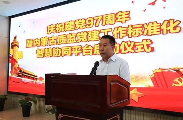 2018年6月29日上午,内蒙古质监党建工作标准化智慧协同平台启动仪式隆重举行,标志着内蒙古质监系统全面从严治党、严肃党内生活工作迈入智慧党建新时代。这也是内蒙古质监人以实际行动向伟大的中国共产党97周年华诞献上的一份厚礼。局党组书记、局长霍武出席启动仪式并讲话,局党组成员、副局长吕金华主持仪式。